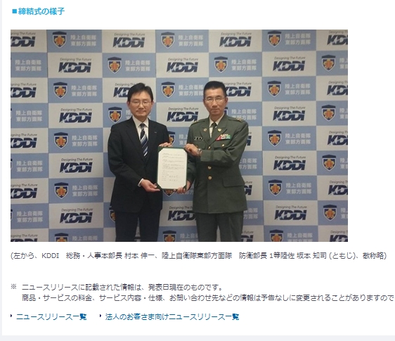 KDDI株式会社と陸上自衛隊東部方面隊は23日、東部方面隊の管轄地域(関東地方、新潟県、山梨県、長野県、静岡県)における災害時の相互協力に向けて、「陸上自衛隊東部方面隊とKDDI株式会社との間の災害時における通信確保のための相互協力に関する協定」を締結したと発表した。