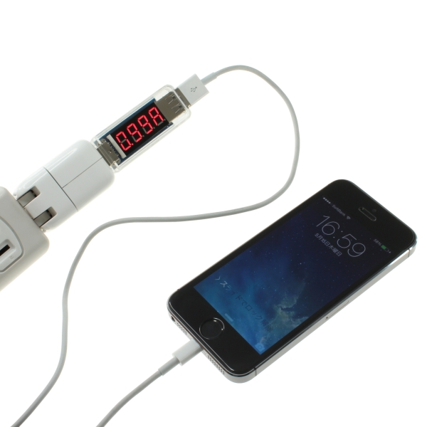 同製品は、USB機器と充電器・PCとの間に中継させることにより、電圧・電流を測定できる計測器。電圧は3V~8V、電流は0A~3Aの範囲までを測定可能。測定した数値はデジタル表示でリアルタイムに確認できる。電圧/電流のデジタル表示は4~5秒おきに交互に切り替わる。