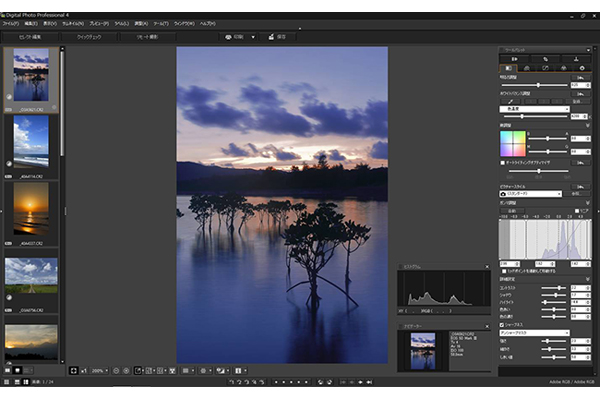 「DPP 4.0」は、プロおよびハイアマチュア向けに開発されたRAW画像の編集ソフト。本バージョンでは、ハイライト/シャドウの調整幅を拡大するなど従来機能を改善したほか、特定色域調整などの新機能を搭載して、基本機能の強化を図った。また、GUIを見直して、編集作業における操作性・利便性を向上させた。