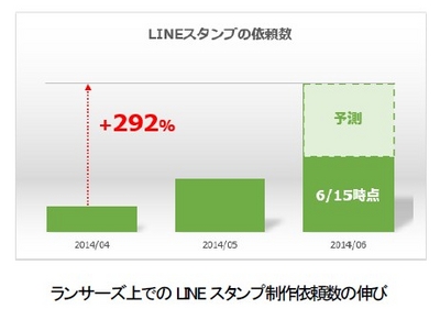 クラウドソーシングサービスを運営するランサーズ株式会社は、今年5月にLINE株式会社が「LINE クリエイターズマーケット」をスタートして以来、「ランサーズ」を利用してLINEスタンプの制作を行う依頼件数が約3倍(+292%)に増加する見通しだと発表した。