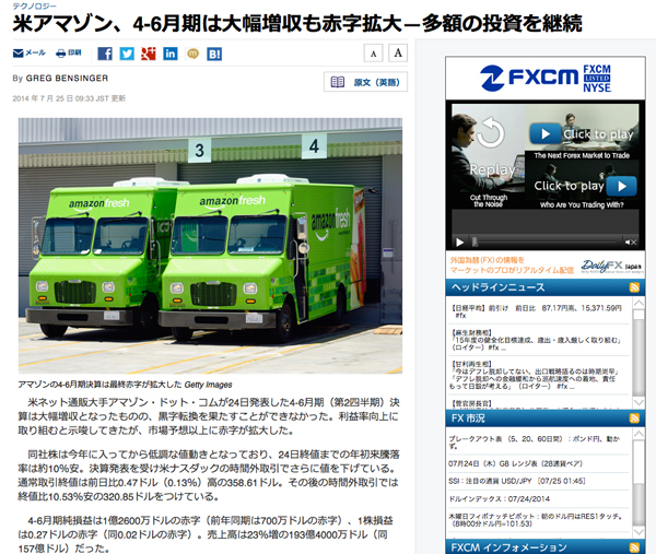 Amazon.comが発表した第2四半期(4-6月期)決算は大幅増収となったものの、市場予想以上に赤字が拡大する結果となったとWall Street Journalが報じている。原因は黒字転換を果たすことができなかったためだという。