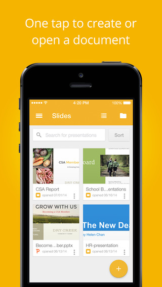 発表によると、「Google Slides」ではファイルの作成・編集、他のユーザーとの共有が可能だ。Googleドライプで提供されているGoogleドキュメントなどの機能と同様だが、スタンドアロンのアプリとなったことでより簡単・シンプルにファイルに操作できる。Microsoft Office、Anroid、そして「Google Docs」「Sheets」「Slide」で作成したファイルどれでもGoogle Appsで作業できるようになった。