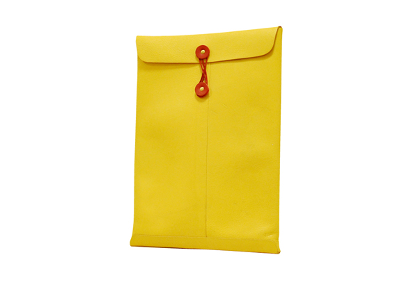 同製品は、スティーブ・ジョブズのプレゼンテーションを再現した「M LEATHER Envelope Pro」の15インチサイズ。ハリウッド映画の小道具やオーダーメイド製品を手がけてきた革職人が製作するハンドメイド製品で、MacBookの中では最も大きいサイズの15inch Retinaディスプレイモデルに対応している。サイズは380(縦)×265(横)×10(幅)mm。カラーはイエローゴールド。