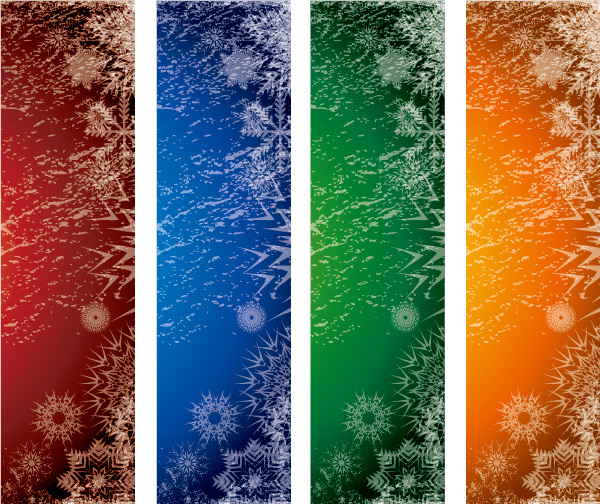 雪の結晶をモチーフにした、エレガントな雰囲気のバナー素材(左イラスト)。赤や緑のクリスマスカラーも入っています。Webサイトでのクリスマス特集などで使ってみたいですね。商用利用もOKです。