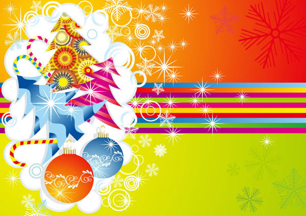 右は、クリスマスツリーをモチーフにした、カラフルで華やかな雰囲気のイラスト。賑やかで元気なイメージを表現できそうですね。セールやキャンペーンなどはもちろん、ダンスイベントなどの告知にも使えそうです。