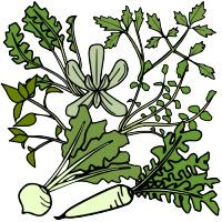 ちなみに七草とは、芹(せり)、薺(なずな)、御形(ごぎょう)、繁縷(はこべら)、仏の座(ほとけのざ)、菘(すずな)、蘿蔔(すずしろ)を指し、現在の名称で言うと、芹はセリ(セリ科)、薺はナズナ(アブラナ科)、御形はハハコグサ(キク科)、繁縷はハコベ(ナデシコ科)、仏の座はコオニタビラコ(キク科)、菘はカブ(アブラナ科)、蘿蔔はダイコン(アブラナ科)を示しているようです。