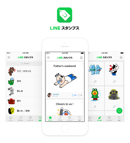 同サービスは、LINEスタンプにオリジナルの一言フレーズを付けて、LINEユーザー間で投稿し合えるサービス。投稿したスタンプは国内の「LINE スタンプス」ユーザーに公開されて、ユーザーは「いいね」を押したり、コメントを残したりすることができる。また、「いいね」が多く付いたスタンプのランキングや、獲得した「いいね」数の累計に応じたユーザーランキングを閲覧できるほか、アプリを利用して気に入ったスタンプがあれば、「LINEで見る」ボタンからLINEアプリ内のスタンプショップに遷移し、購入できる。