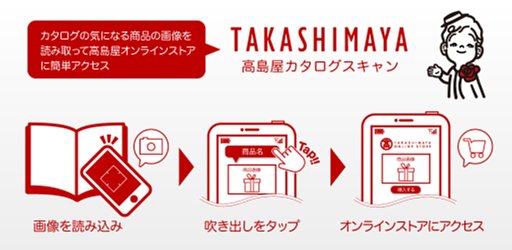 高島屋カタログスキャンは、スマートフォンのカメラを高島屋の発行するカタログの商品画像にかざすと、オンラインストアの商品詳細ページで、商品購入ができるというサービス。