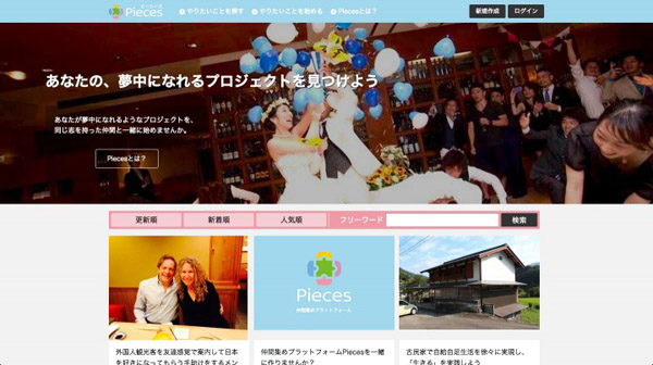 プロジェクトの仲間を集めるサイト「Pieces」公開