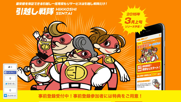 株式会社ヨタヨクトは29日、最低価格保証の引越し一括見積りサービス「引越し戦隊ハコブンジャー!」ティザーサイトを公開した。登録業者を募集しており、成約手数料が無料になるなどの期間限定キャンペーンを行う。