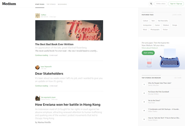 Mediumの最近のニュースを見ると、「パブリッシャーでありプラットフォームであるMedium」という表現をされていることが多い。このコラムでなんども紹介しているプラティシャーという呼び方を、メディア側があえて避けているようだ。Mediumはブログプラットフォームとして、誰でも簡単に自分の意見を書き出せるようなオープンなサービスであると同時に、プロライターや編集者を自社に抱えて、独自のWebマガジンをつくりはじめている。さらにそのWebマガジンを企業にスポンサーさせて、広告収入を得ようとしている。このあたりはViceに近いアプローチだ。Mediumのエディタは長文を書きやすいことで知られているが、最近Twitterのように非常に短いテキストや写真だけをアップできるようなUIを採用した。よりライトな書き手を増やすことで、トラフィック増強を図りたいのかもしれない。