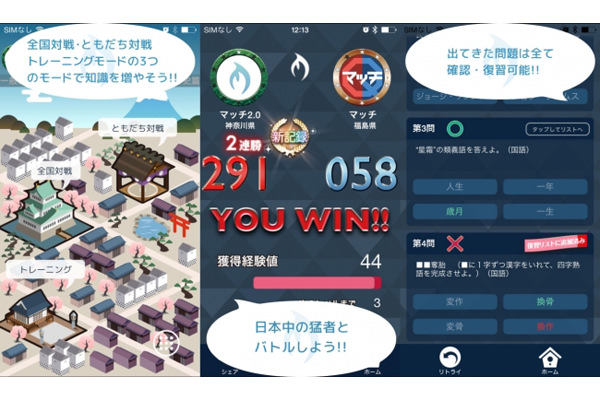 同アプリは、全国のユーザーと対戦型クイズを楽しめるアプリ。本バージョンではより親しみやすいインターフェースに刷新したほか、複数ジャンルに対応し、世界史や感じ、一般常識などをテーマに対戦できるようになった。「全国対戦」「ともだち対戦」「トレーニング」を選択可能で、間違えた問題はトレーニングモードから復習できる。
