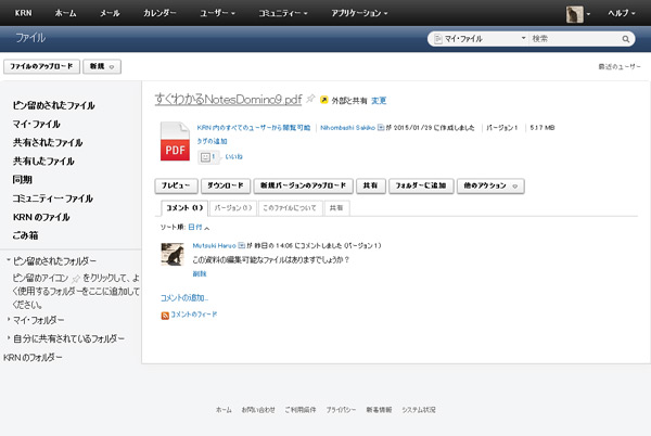 同サービスは、利用者1人あたり1TBのデータ容量を提供し、SNSの仕組みでユーザー間のコミュニケーションを実現したオンライン・ストレージサービス。スマートフォンやタブレットなどのモバイル端末からのアクセスも可能。各ファイルには、所有者のみ閲覧可能な「非公開」、同一組織内のユーザーが閲覧可能な「公開」、組織外を含む指定されたユーザーのみ閲覧可能な「共有」の3種類のアクセス権を指定。ユーザーは、それぞれの指定において「読者」もしくは「編集者」の権限で利用できるので、企業外の取引先などとのファイル共有も安全に行うことができる。