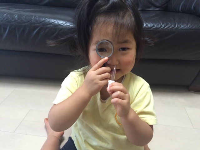 まずはリアルズームツールをチェック。意図を理解していないせいか、直接ズームツールを目に当ててしまう。本来のズームツールでは拡大表示することができるが、3歳児が使用すると全く使い方を誤るということが改めてわかった。