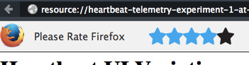 「Firefox 37」では新たに、ユーザーがFirefoxの評価を手軽に送信でき、品質向上に役立てられる「Heartbeat」を搭載。任意に選ばれたユーザーのブラウザ上に評価ウィジェットが表示される。評価の仕方は簡単な5段階評価。ユーザーはこの機能を設定でオフにすることもできる。