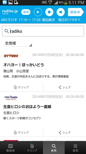 スマートフォンで日本全国の地上派ラジオを聞くことのできるインターネットラジオアプリ。災害発生時には重要な情報取得手段となるラジオ。選局画面は、関東や中部、近畿などのエリアごとに各ラジオ局が振り分けられ、簡単に聞きたい局をセレクトできる。各局の画面では、タイムラインや番組情報、オンエア曲などの情報が得られる。