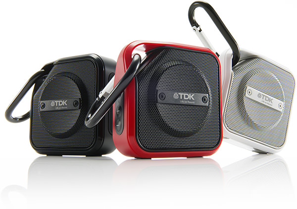 保護等級IP54相当の防水・防塵機能を持つスピーカー。リチウムイオン充電池を内蔵し、6時間の連続再生を行える。