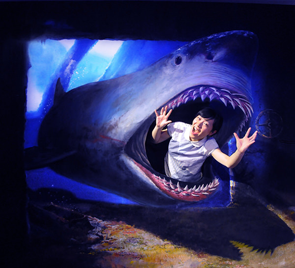 アートリックミュージアムとは、目や体を使って不思議な体験をできるミュージアム。陰影をほどこすことで飛び出して見える絵画作品や、作詞錯覚効果を利用した不思議な作品などが展示されており、カメラで撮影したり作品の中に入り込んだりして楽しめる。今回の企画は、そのトリック&体験アートにホラー風の要素も加えた夏ならではの展示となっている。そのほか、食いつき恐竜、さかさまの晩餐、ジャンボシャボン玉、海底探検など2015年春リニューアル作品も好評公開中だ。定価料金は大人1500円/中高生1000円/子ども600円/3歳以下無料で、大人1300円になるキャンペーン価格も実施中。