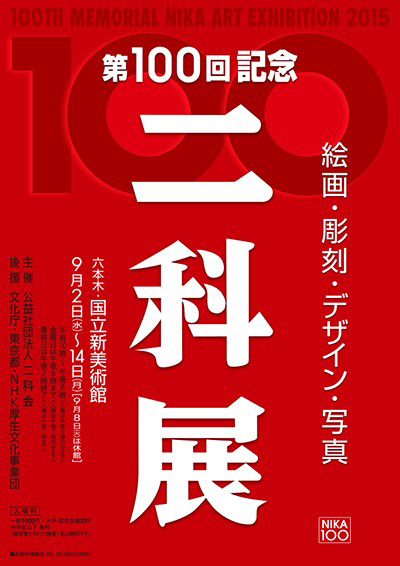 公益社団法人二科会は、2015年9月2日(水)から9月14日(月)まで、国立新美術館で「第100回記念 二科展」を開催する。第100回開催を記念して、二科100年史など出版物の刊行や特別展示/講演会/ギャラリートーク/ミニコンサートなどのイベントも予定。会期中の休館日は9月8日(火)、開催時間は10:00〜18:00(金曜は20:00まで/入場は閉場の30分前まで)で、最終日のみ14:00終了/入場は13:00までとなる。当日券での入場料は、一般1000円/大学・高校生800円/中学生以下無料。