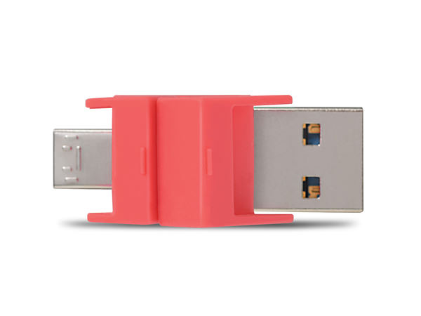 OTG(On-The-Go)対応のAndroidスマートフォン/タブレットやPC/Macで利用できるUSBメモリ。容量は64GB、32GB、16GBの3種類。サイズは11.0×19.8×36.6mm。