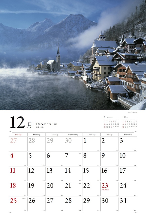 どれも吸い込まれそうになるメルヘンな景色、街並み、村などの写真は、実に普段あまり見たり聞いたりすることがない場所ばかり。しかし、まるで絵を眺めているかのような美しい写真の数々は、童話か? 映画か? どこかで見たことがあるような、ふと、想いを巡らすような不思議とやさしい空気感が漂う。世界中の第一線で活躍する写真家たちがヨーロッパ、イギリス、地中海、北アフリカ、南米で捉えたもっとも美しい街と、もっとも愛らしい村の風景の一瞬を捉えた、至極の風景写真カレンダーが一年を通してあなたのお部屋を飾る。