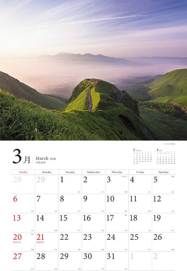 日本が誇る色とりどりの四季カレンダー「2016 美しい日本の四季 ~うつろう彩り、残したい原風景~」