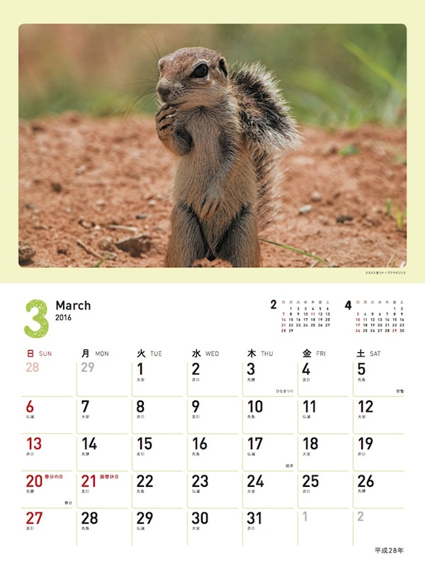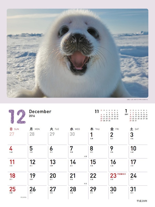 愛らしい動物たちの笑顔がいっぱい「2016 スマイル!動物のかわいい笑顔カレンダー」