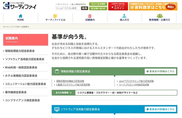 ●資格概要:Web制作にかかわる基礎であるWebリテラシー検定を中心に、Webデザインの実装能力などを計るWebデザイナー検定、Webサイトの企画設計を問うWebディレクター検定、Webビジネスに特化したWebプロデューサー検定、といった構成になっている。特に、Web制作関連に従事している方は、チェックしておきたい。