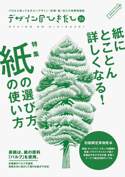 紙の選び方や使い方が特集されている「デザインのひきだし26」