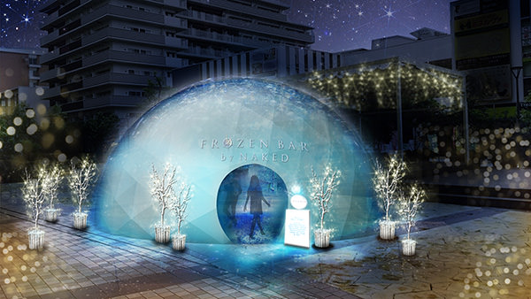 「FROZEN BAR by NAKED」は、動くイルミネーションとバーを組み合わせた滞在型のイルミネーション空間だ。氷の世界をイメージしたドーム内で、プロジェクションマッピングやインタラクティブアートによる空間演出を実施。提供されるドリンクのグラスに反応してオリジナルの映像が展開されるカウンターや、歩いた軌跡が凍っていく床面、星空の天井など、光と映像による斬新な空間をドリンク片手に体感することができる。なお、営業期間のうち、2015年12月30日(水)〜2016年1月4日(月)は休日。