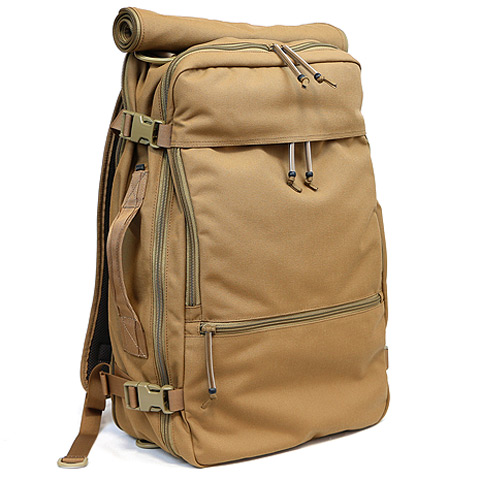 上側にロールアップされたカバーが個性的な、収納力に優れた3WAYバッグ。バックパック、ショルダーバッグ、ハンドバッグと、3つの形態で使用できる。ロールアップされたカバーは、ショルダーバッグスタイルで使用する際に、バックパックストラップを収納するためのものだ。ジッパーを閉じるだけで簡単に収納でき、素早くショルダースタイルに転換できる。メイン収納の背面にクッション材の入ったPCポケットを内蔵している。フロントポケットは縦横どちらの方向からでも開閉可能で、荷物の量によりマチ幅の調節ができるサイドリリースバックルを備えるなど、細かい部分まで使いやすさを追求している。