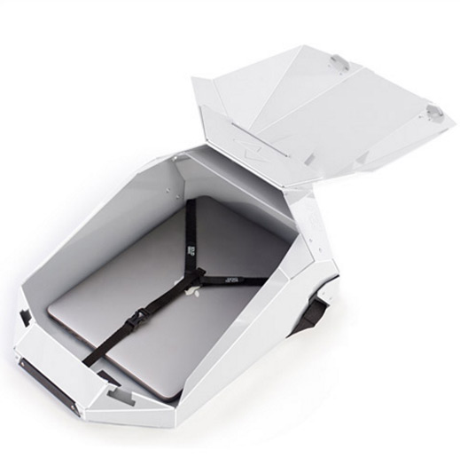 甲羅型のデザインがひときわ目を引くが、実は軽量で高い強度を兼ね備えたPCリュックとして使用できる製品だ。デザインはアルマジロの身体をイメージしたもので、素材は折り曲げや引き裂きに強いポリプロピレンブロック共重合体。15インチまでのノートPCやタブレットを専用コンパートメントに収納でき、長さ調節が可能なラップトップコードでデバイスをしっかり固定できる。また、携帯電話、キーホルダー、眼鏡、サングラスなどの小物を収納できるスモールコンパートメントと、A5サイズのノートやメモ、名刺などを固定できるドキュメントクリップも備える。