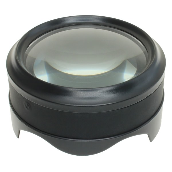 同製品は、4つのLEDライトを搭載した拡大鏡。本体側面のスイッチを押すとLEDライトが点灯し、暗い場所でも文字を鮮明に照らすことができる。明るさの調整も可能で、スイッチを押すごとに100%、50%、消灯を切り替えられる。文字は約5倍に拡大して見ることができる。