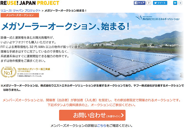 「ヤフオク!」が太陽光発電所設備を出品、開始価格は1.61億円