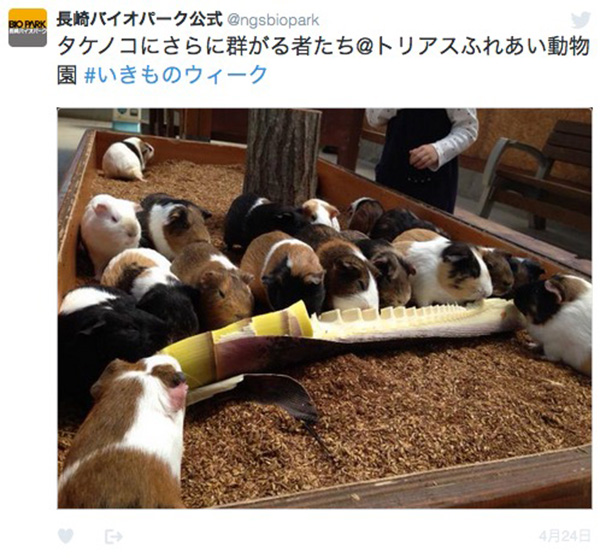 本企画は、昨年初めて開催されて好評だったテーマ投稿イベント。動物園や水族館のスタッフなどが、お客さん目線ではなかなか見ることのできないユニークな動物写真・動画を投稿してくれる。2015年の投稿では、旬のタケノコに群がるモルモットの様子(長崎バイオパーク)や可愛いコツメカワウソの様子(鹿児島県平川動物公園)などが人気を集めていた。