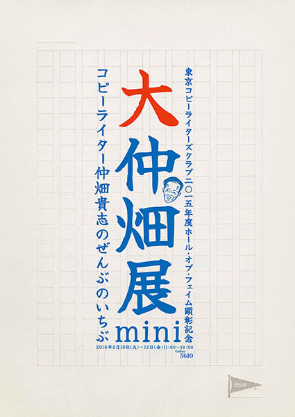 東京コピーライターズクラブ(TCC)は、2016年5月10日(火)から4日間にわたり、Gallery 5610にて「大仲畑展mini〜コピーライター仲畑貴志のぜんぶのいちぶ〜」を開催する。数々のヒット作を生み出してきた仲畑貴志氏が、2015年度Hall Of Fame(コピーライターの名誉殿堂)に顕彰されたことを記念する展覧会。名作コピーが生まれたプロセスや、時代を動かして人の心をとらえるコピーの力を垣間見ることができる。入場無料で、時間は11:00〜18:00(5月10日と5月13日はイベント開催のため17:00クローズ)。