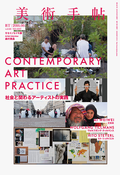株式会社美術出版社は、月刊の美術雑誌「美術手帖」の2016年6月号を5月17日に発売した。今月号のテーマは「コンテンポラリー・アート・プラクティス」で、社会と関わる実践としてのアートを特集。紛争 / テロ / 難民問題 / 環境汚染 / 経済状況の不透明さなど、各地で起きている諸問題に対してアーティストがどのような実践を行っているかに、インタビューや実例を通して迫っている。A5判変型で230ページ。
