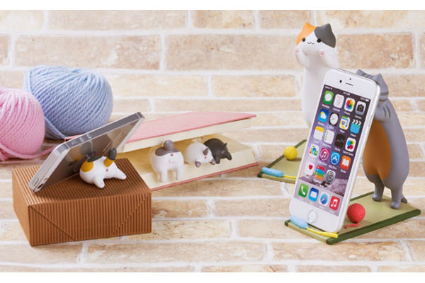 Iキャットシリーズは、ネコへの強いこだわりを持ったイラストレーターのねこむらおたこさんによる完全監修製品。ネコがとびかかる姿をスマホスタンド化した「Iキャットとびかかりスタンド」は、iPhoneとAndroidスマートフォンの両方に対応しており、縦にも横にもスマートフォンを置くことができる。