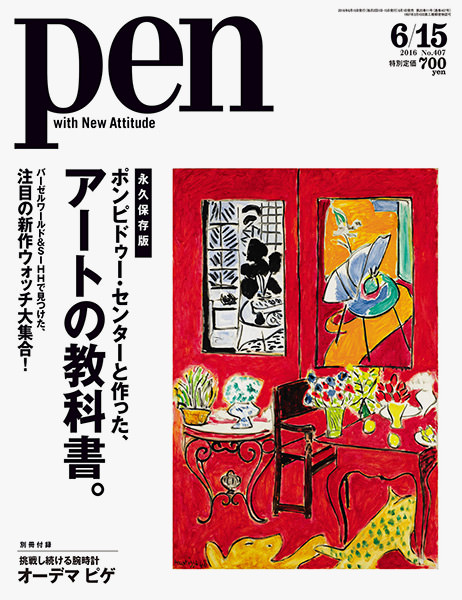 「Pen」は、毎月1日 / 15日に発売されており、アートやデザインに関する特集が組まれることも多い人気雑誌。今号では、敷居が高いと思われがちな近現代アートを身近に感じられる特集が掲載されている。「モダンアートってなんですか?」「ピカソはすごいのですか? 天才ですか?」「デュシャンのトイレ、どこがアート?」「立体作品は、どう見たらいいのですか?」「なぜウォーホルのスープ缶は、名作なの?」などの率直な質問に、具体的な作品を誌面に掲載しながら回答。表紙を飾る巨匠アンリ・マティス(1869〜1954年)を筆頭に、話題の現代アーティストまで、注目の作家と代表作についても紹介されており、近現代アートについての理解を深めることができる。