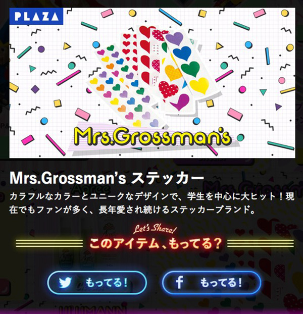 なお、「Aladdin 魔法瓶」や「Fieldcrest タオル」、「BUTLER ハブラシ」はキャンペーン対象アイテム。家にあるこれらの商品の写真を撮り、#プラザタイムトラベルをつけてインスタグラムに投稿すると、抽選で「Mrs.Grossman's(ミセス・グロスマン)」の創設者アンドレア・グロスマンが用意したスペシャルステッカーが10名にプレゼントされる。