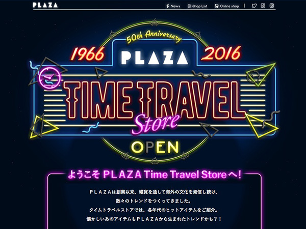 株式会社スタイリングライフ・ホールディングス プラザスタイル カンパニーは、同社が運営する輸入生活雑貨店「PLAZA」(旧ソニープラザ)の創業50周年を記念して、キャンペーンサイト「タイムトラベルストア」をオープンしている。