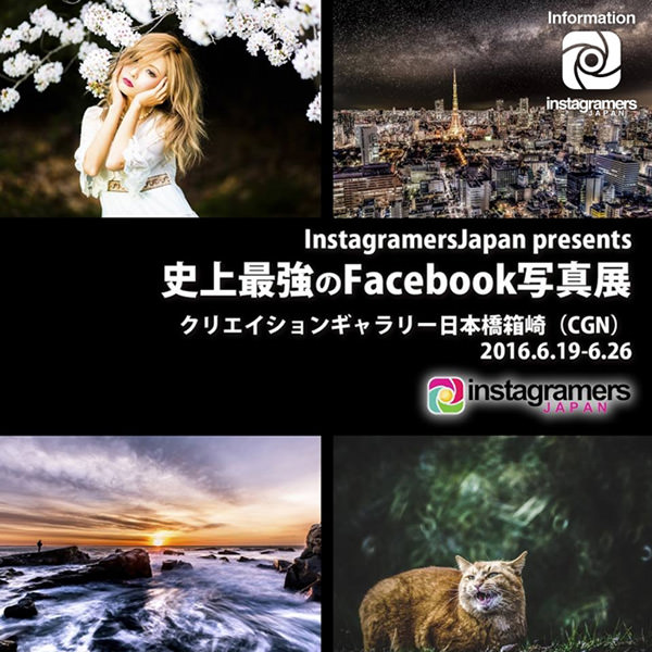 2016年6月19日(日)から6月26日(日)まで、クリエイションギャラリー日本橋箱崎にて、「IGersJP史上最強のFacebook写真展」が開催される。IGersJP(InstagramersJapan)は、2011年5月から活動し、昨年からの「史上最強のインスタグラム展」の巡回でも話題を呼んだInstagramのユーザーコミュニティ。今回の企画は、なぜかInstagramではなく、Facebookページ単独企画としての写真展となっている。入場無料で、時間は6月23日(木)までが12:00〜20:00、6月24日(金)以降が10:00〜20:00(最終日は18:00まで)。