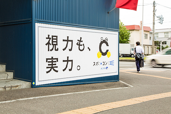 「スポ×コン応援団」プロジェクト名の由来は、スポーツ×根性ではなく、スポーツ×コンタクトレンズ。全国の中高生がスポーツに本気で取り組むために、“根性”だけではどうにもならない“視力”の大切さが伝えられている。屋外広告を展開する地域に北海道が選ばれたのは、15〜17歳の視力が全国でもワーストクラスであるため(平成文部科学省「学校保健統計調査」2013年度〜2015年度版)。北海道内でも、特に複数のスポーツ強豪校がしのぎを削る札幌市東区が掲出先に選定された。