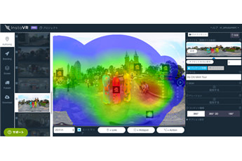 また、VRコンテンツ上のアクションリンクからの問い合わせや電話発信などのコンバージョン計測、ヒートマップによるコンテンツ分析も行って、プロモーション効果の可視化やコンテンツの改善を支援する。