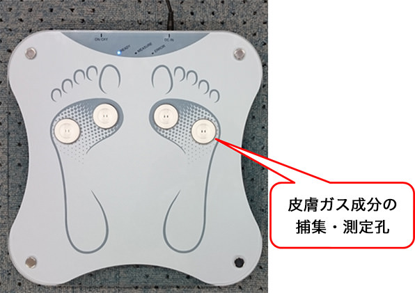 同装置は、体脂肪の分解・燃焼に伴って放出されるアセトンのほか、飲酒の指標となるエタノールと脱水の指標となる水蒸気の3種類を同時に計測することが可能で、利用者が約20秒間乗るだけで計測できる。片足につき2か所の孔があいており、その孔を足裏で塞ぐことで計測可能で、靴下やストッキングをはいた状態でも計測できる。計測値に基づいた体脂肪の燃焼状態などの結果は、スマートフォンやタブレットで確認できる。