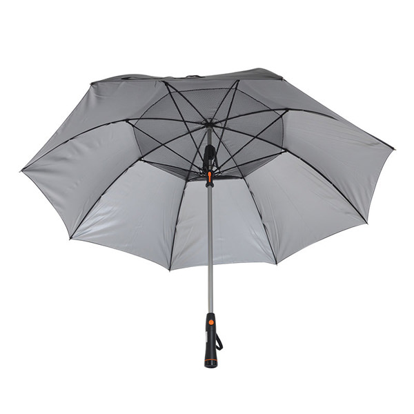 傘の裏にはUVカット効果のあるシルバーコーティングを施しており、晴れの日も日傘として使用できる。傘の骨は丈夫な8本骨を採用しており、完全に傘を開かないとファンが回らない安心設計となっている。