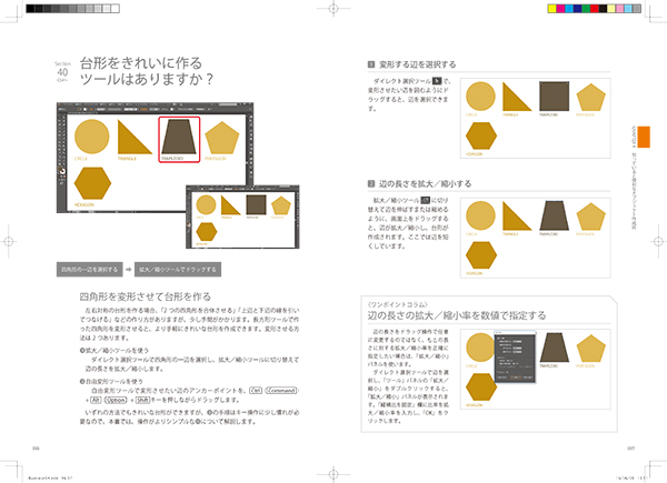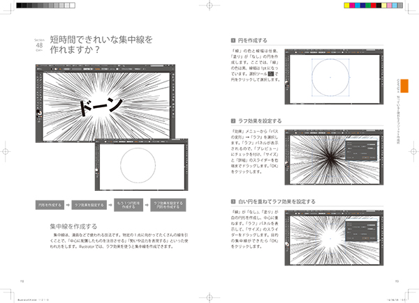本書はAdobe初心者はもちろん、PhotoshopやInDesignなら使った事がある、という人に向けても掴みやすい構成になっており、「Illustratorでは何ができるのか」イメージしやすい内容となっているのも魅力的。これだけは覚えておきたいという各機能の使い方や、汎用性の高い基本テクニックも充実しており、これさえ目を通しておけばIllustratorは怖くない。実際に作品を作る上で必要となる”現場”の知識も多数収録し、テキストの域に収まらない実践に向けた実用書となっている。