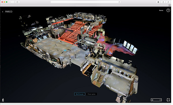 株式会社パルコは、パルコ劇場の一時休館に際して3DCGで劇場を記録した「PARCO THEATER 3D」のフルバージョンを特設Webサイト上に公開した(http://www.parco-play.com/web/parcotheater/)。株式会社アマナが提供する3DCGモデリングサービス「ジオウォーク」によって制作されたスペシャルコンテンツ。ロビー / 廊下 / 客席 / ステージのほか化粧室までありのままの状態で記録されており、まるでその場にいるかのように劇場内部の360°バーチャルツアーを行える。