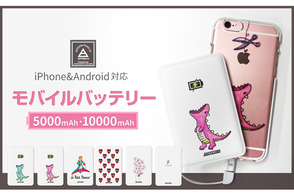 本体デザインは、個性豊かなデザイナーたちの作品を厳選したもので、「はらぺこザウルス グリーン/ピンク」「星の王子さま」「レッドハート」「桜」「雷」と、5種類(6バリエーション)のイラストが描かれている(「はらぺこザウルス」以外は5000mAhのみ)。