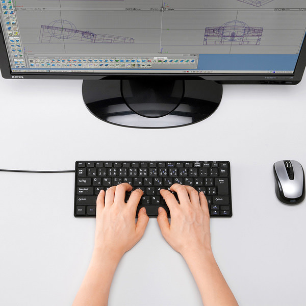 両シリーズは日本語109A配列を採用しており、「SKB-SL17*N」には102キー、「SKB-SL18*N」には85キーが搭載されている。キータッチしやすいカーブ形状の構造と、1つずつのキーを区別して認識しやすいアイソレーション型のキートップが特徴。19mmのキーピッチが確保されており、一般的なフルキーボードと同じ感覚でタイピングできる。キースイッチはパンダグラフ方式。USBケーブルの取り回しやすさにも配慮されており、筐体の右 / 左 / 中央のうち好きな位置から取り出して固定できる。ケーブルの長さは約1.5m。本体サイズ / 重量は、「SKB-SL17*Nシリーズ」が345(幅)×19(高さ)×115(奥行)mm / 約300g、「SKB-SL18*Nシリーズ」が293(幅)×19(高さ)×115(奥行)mm / 約260gとなっている。